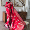 This saree is truly exquisite, showcasing the delicate craftsmanship of a handwoven tissue Banarasi with Kadua weave.