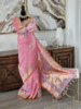 - Color: The main color of the saree is a soft and delicate shade of pink, giving it a feminine and elegant appeal.